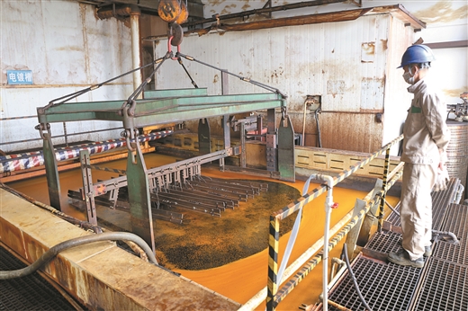 在廣西柳州和敏表面處理科技有限公司,工人正對重達十幾噸的模具進行電鍍。